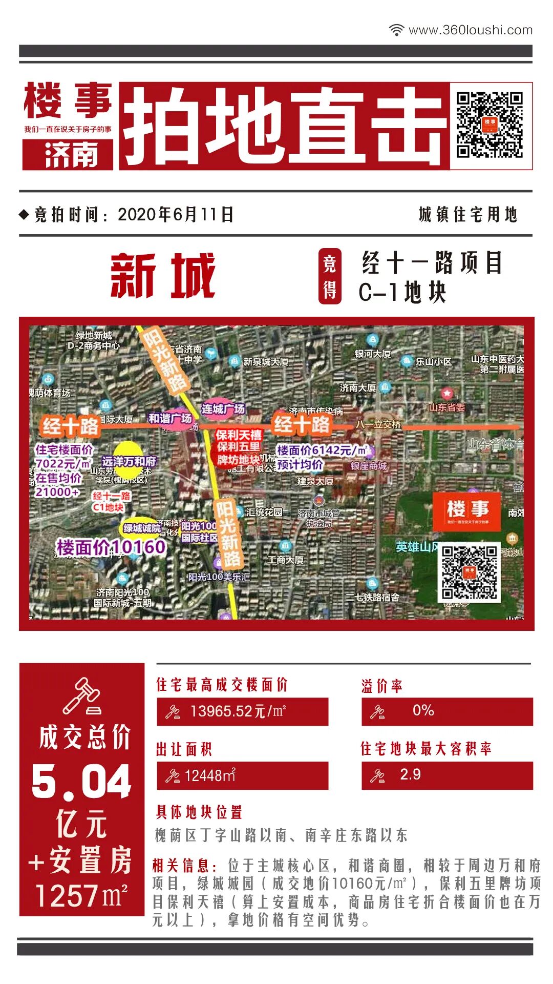 经十一路C1地块竞价40轮,3家房企达到最高限价50414.4万元,进入竞拍安置房环节,折合楼面价13965.52元/㎡,业内小道这三家房企分别为绿城、新城、中海。