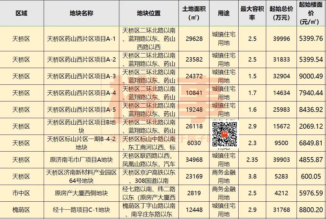 天桥区药山西片区组团地块,是611供地中的大头,共包含6宗地块,5块住宅和1块商业用地,约30万方。